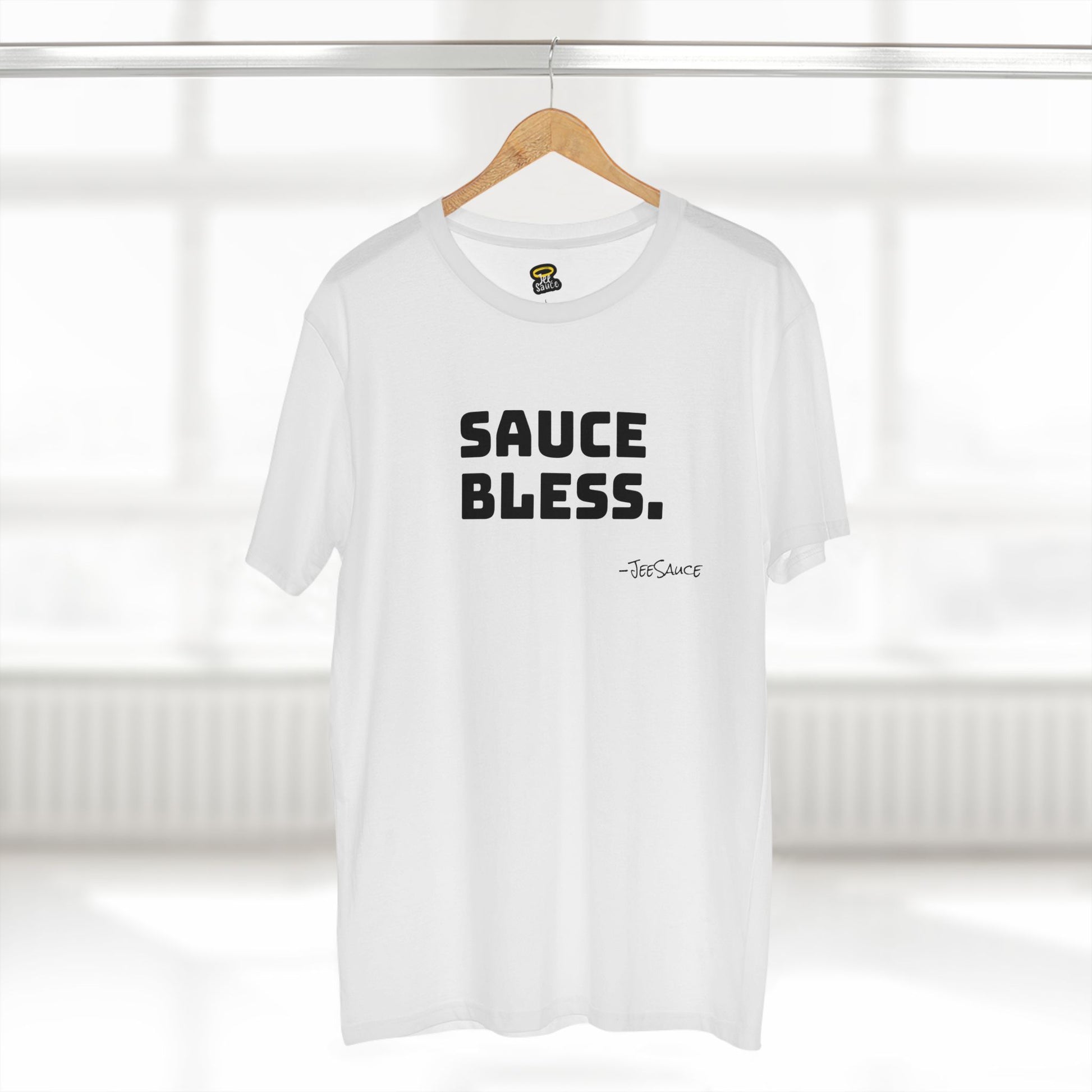 This simple, soft tee speaks like a late-night kitchen confession. The minimal “Sauce Bless.” text sits small and confident on a clean white field, the kind of shirt you throw on after a messy cooking session or when you want to wear a little humor without shouting. It drapes with relaxed, comfortable lines and feels familiar right away—worn-in in attitude but fresh in fabric. Wear it while stirring a simmer, grabbing takeout, or meeting friends for a casual hangout. It lands perfectly between playful and understated, an everyday piece that quietly celebrates good food and easy company.